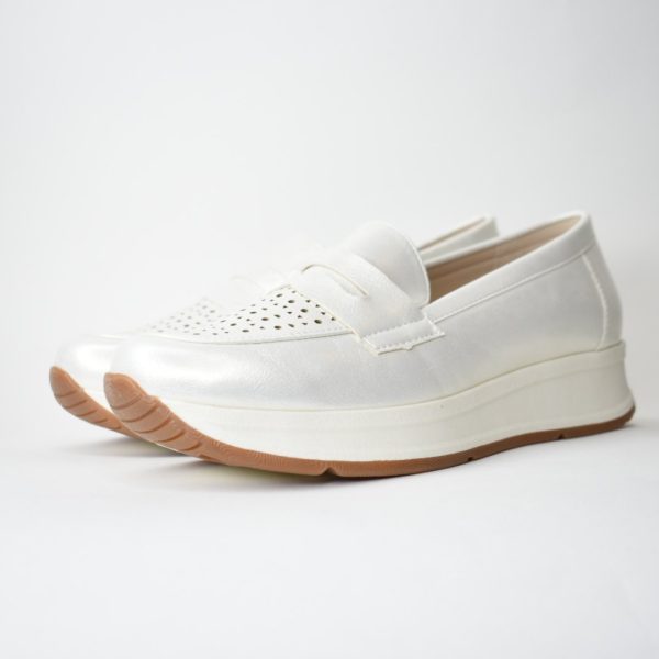 Μοκασίνια Διάτρητης, Ιριδίζουσας Δερματίνης HF1918 White/Λευκό