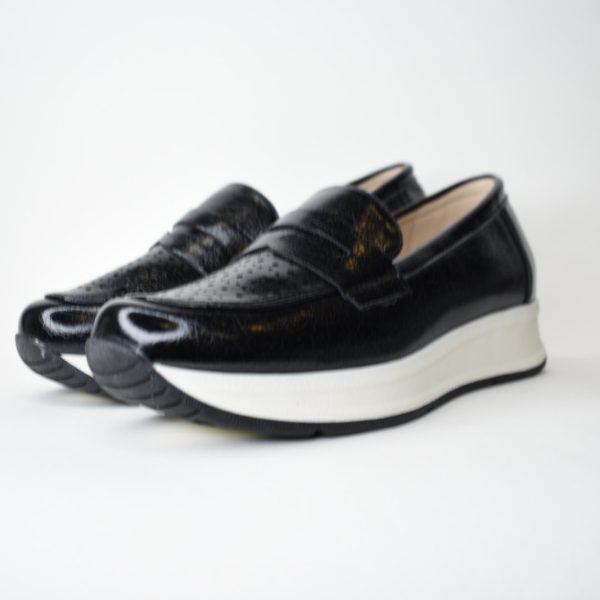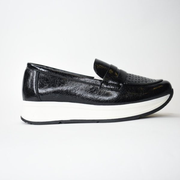 Μοκασίνια Διάτρητης, Ιριδίζουσας Δερματίνης HF1918 Black/Μαύρο