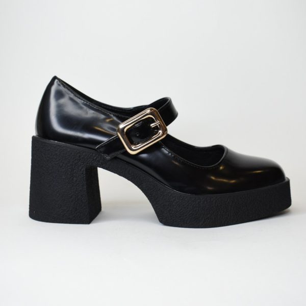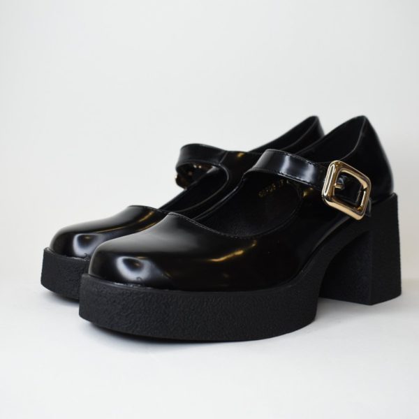 Γοβα με φαρδυ Τακουνι 6,5cm και Σολα απο Λαστιχο Y3620 Μαυρο/Black