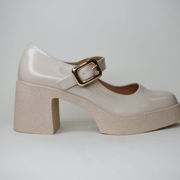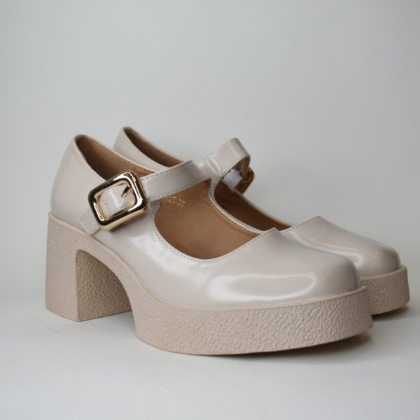 Γοβα με φαρδυ Τακουνι 6,5cm και Σολα απο Λαστιχο Y3620 Beige/Μπεζ