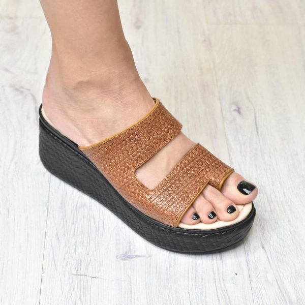 Παντοφλες/Πλατφορμες με Δερματινη Πολυτελειας και Μεγαλη Φασα J 2254 Μαυρο/Black