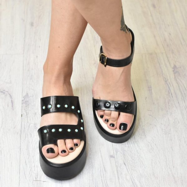 Παντοφλες/Πλατφορμες με Δερματινη Πολυτελειας και Μεγαλη Φασα J 2254 Μαυρο/Black