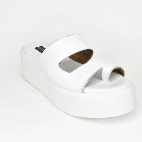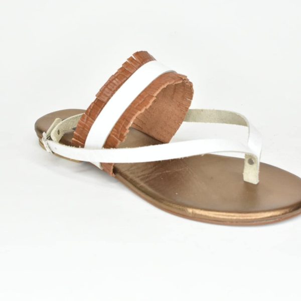KSFPED 001 Δερματινα Πεδιλα με Κροσια και Δαχτυλο Kαμελ & Λευκο