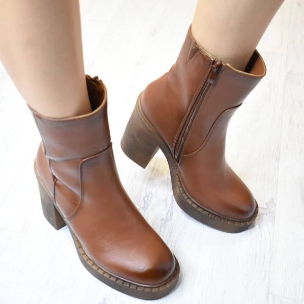 Μποτακια Δετα με Φαρδυ Τακουνι και Φιαπα Brown/Καφε T 2958