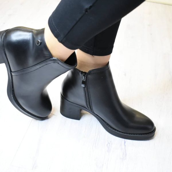 Μποτακια Casual Λουστριν με Φαρδυ Τακουνι Black/ Μαυρο YL63