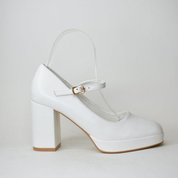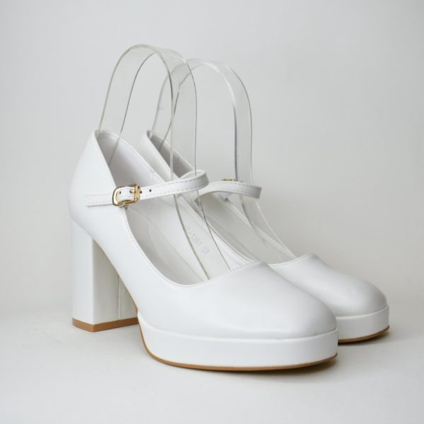 Γοβα με Φαρδυ Τακουνι και Φιαπα LL-1390 Λευκο/White