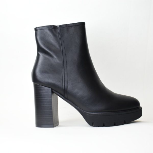 Μποτάκια Δερματίνης με Χοντρό Τακούνι MP761 Black/Μαύρο