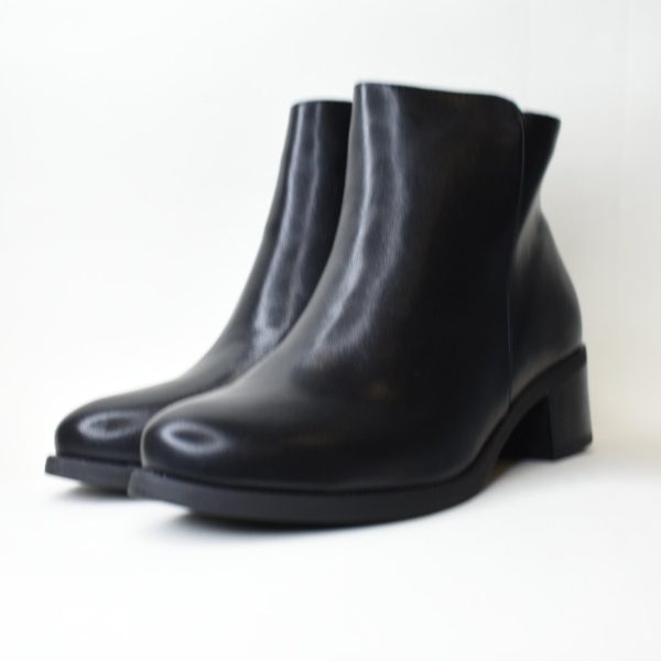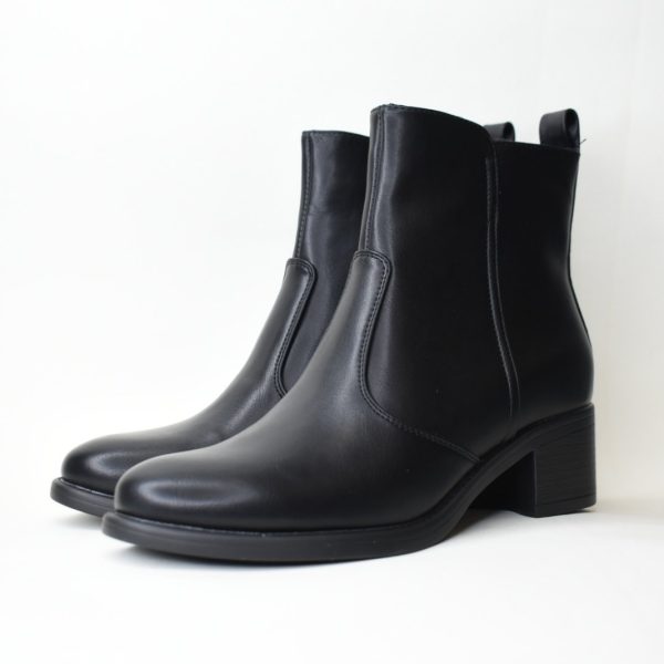 Μποτάκια Δερματίνης με Χαμηλό Τακούνι MS10 Black/Μαύρο