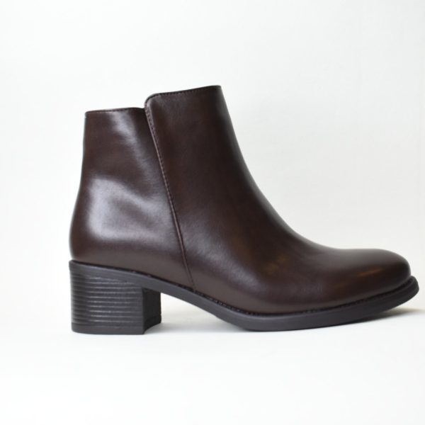 Μποτάκια Δερματίνης με Χαμηλό Τακούνι MS10 Brown/Σοκολά
