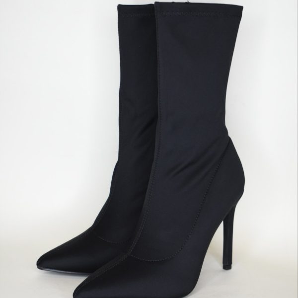 Μποτάκια Αμπιγιέ Κάλτσα με Λεπτό Τακούνι και Χρυσό Φερμουάρ 23025 Black/Μαύρο
