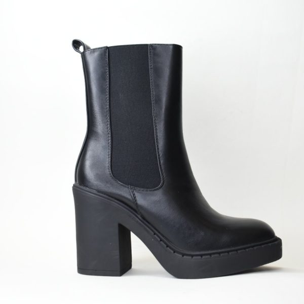 Μποτάκια Δερματίνης με Λάστιχο και Χοντρό Τακούνι MP3551 Black/Μαύρο