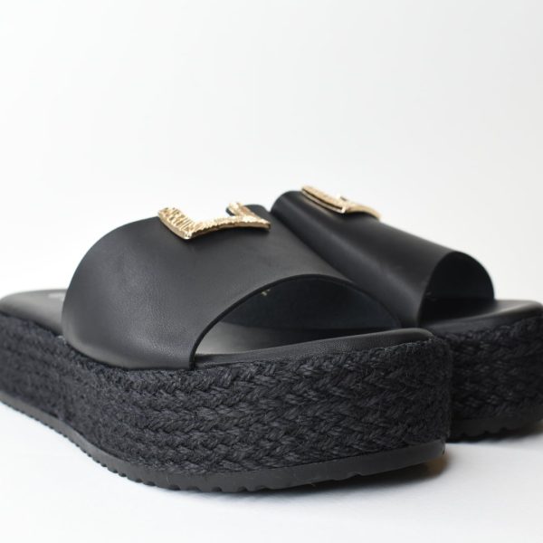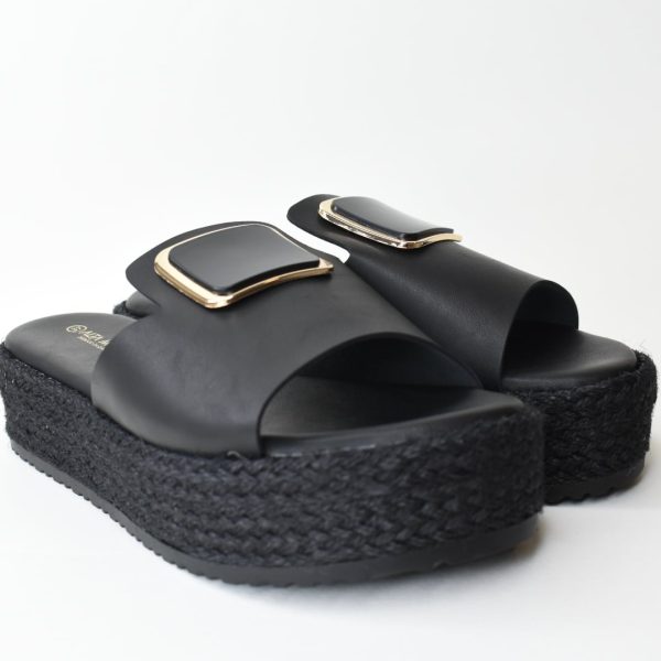 Παντοφλες Flatform με σολα τυπου espantrilla και Μεταλλικη αγκραφα/5535 Μαυρο/Black