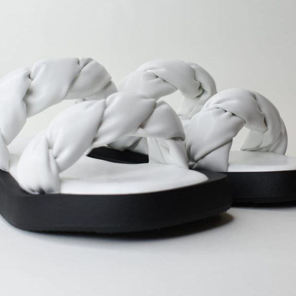 Παντοφλες Flatform με Αφρωδη Σολα και Bareta με Πλεξουδα/ H 853 Λευκο/White