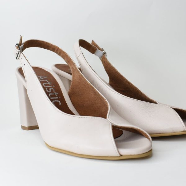 Δερματινα Πεδιλα Pip toe Classic με Φαρδυ Τακουνι 8.5 cm Artistic 023 Μπεζ/Beige