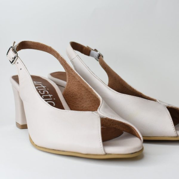 Δερματινα Πεδιλα Pip toe Classic με Φαρδυ Τακουνι 5.5 cm Artistic 023 Μπεζ/Beige