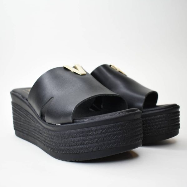 Χειροποιητες Δερματινες Παντοφλες Πλατφορμες με Διακοσμητικο V Artistic 1103-V Μαυρο/Black