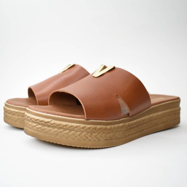 Χειροποιητες Δερματινες Παντοφλες Πλατφορμες με Διακοσμητικο V Artistic 1103-V Ταμπα