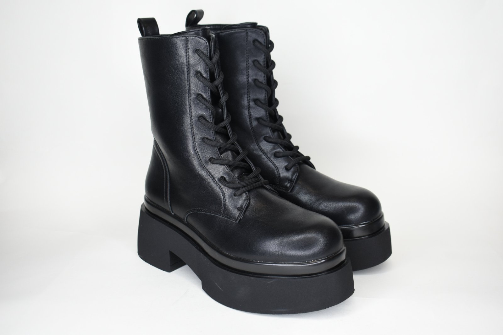 Δερμάτινα Μποτάκια με σόλα από φυσικό λάστιχο Μαύρα