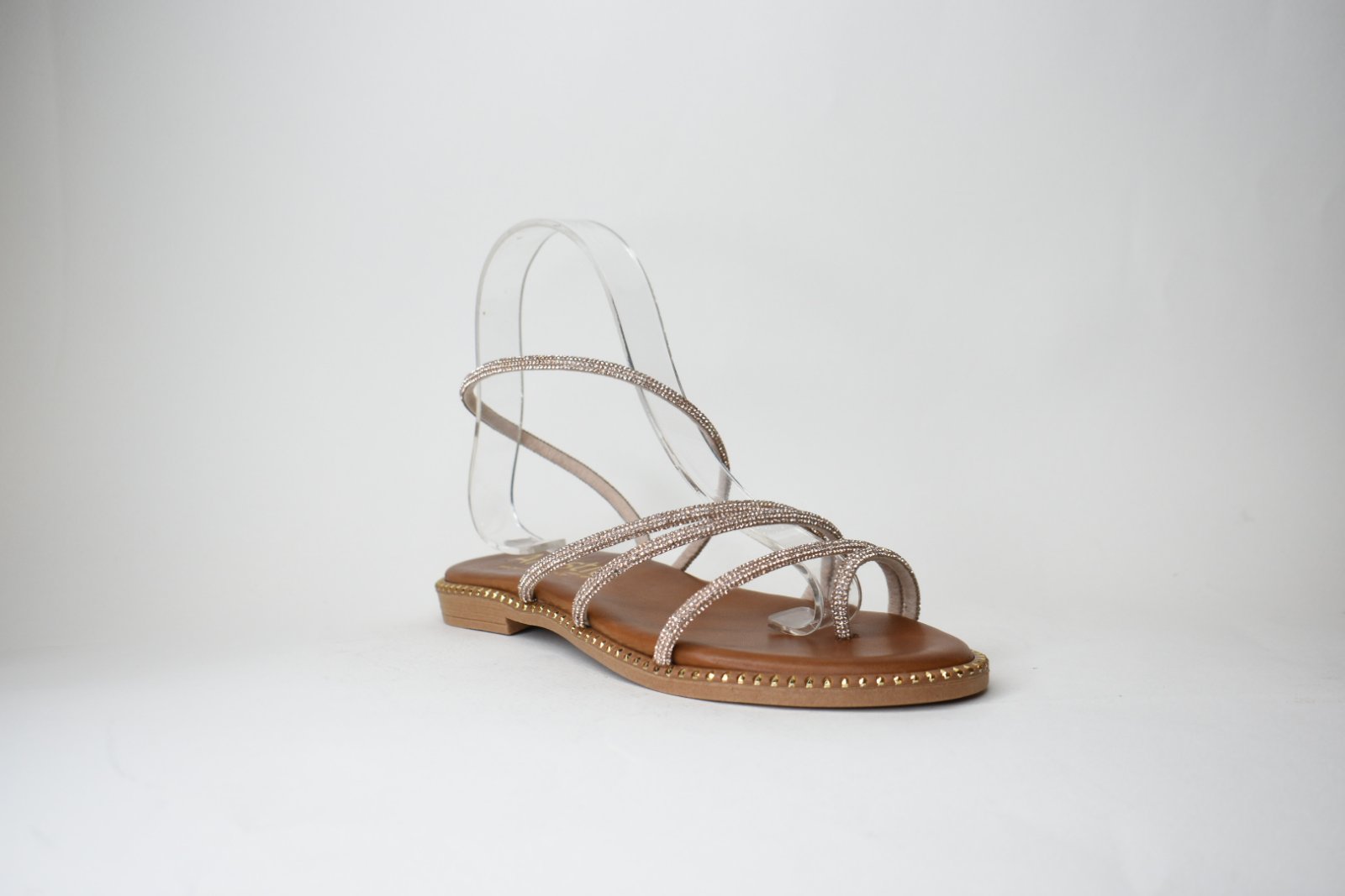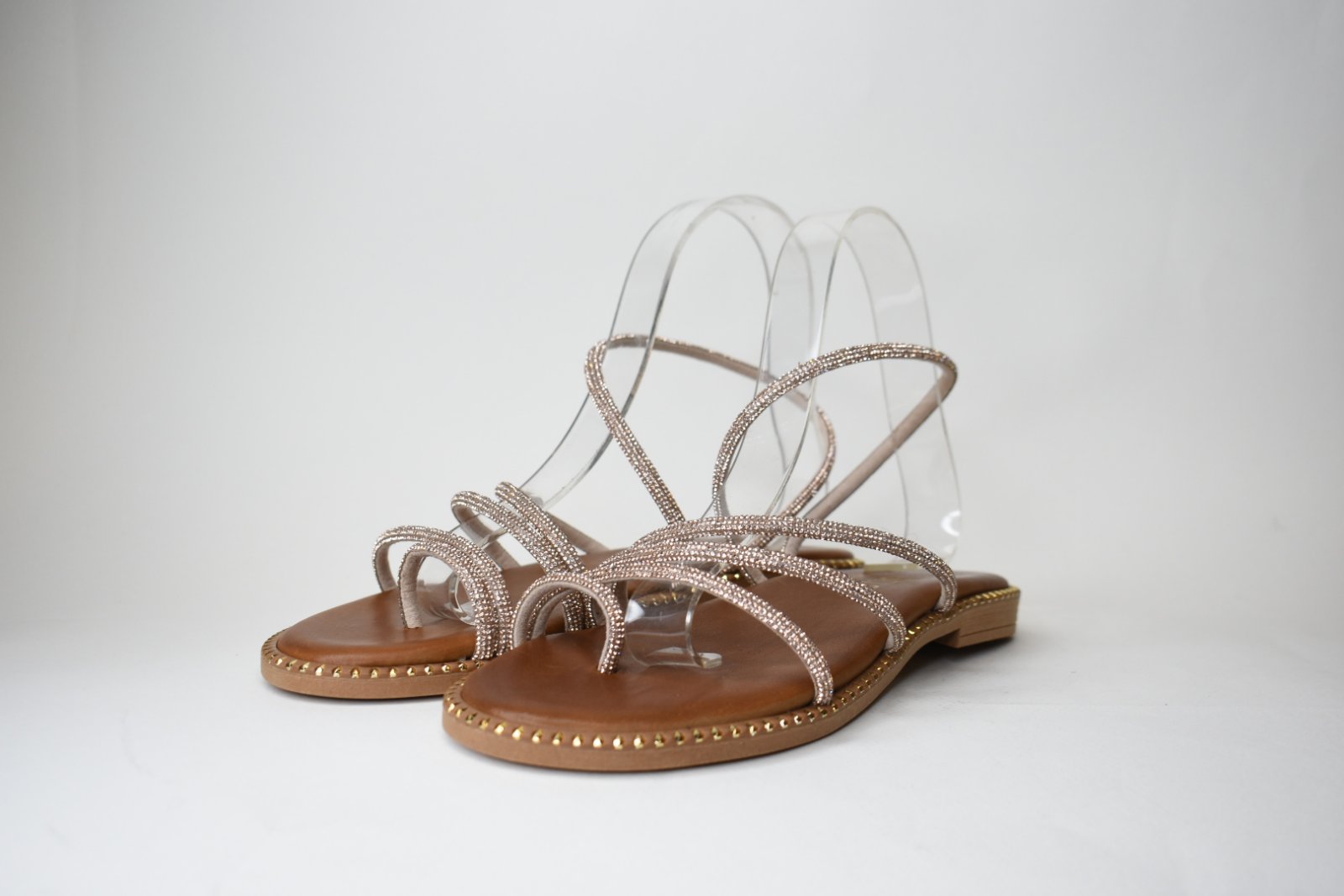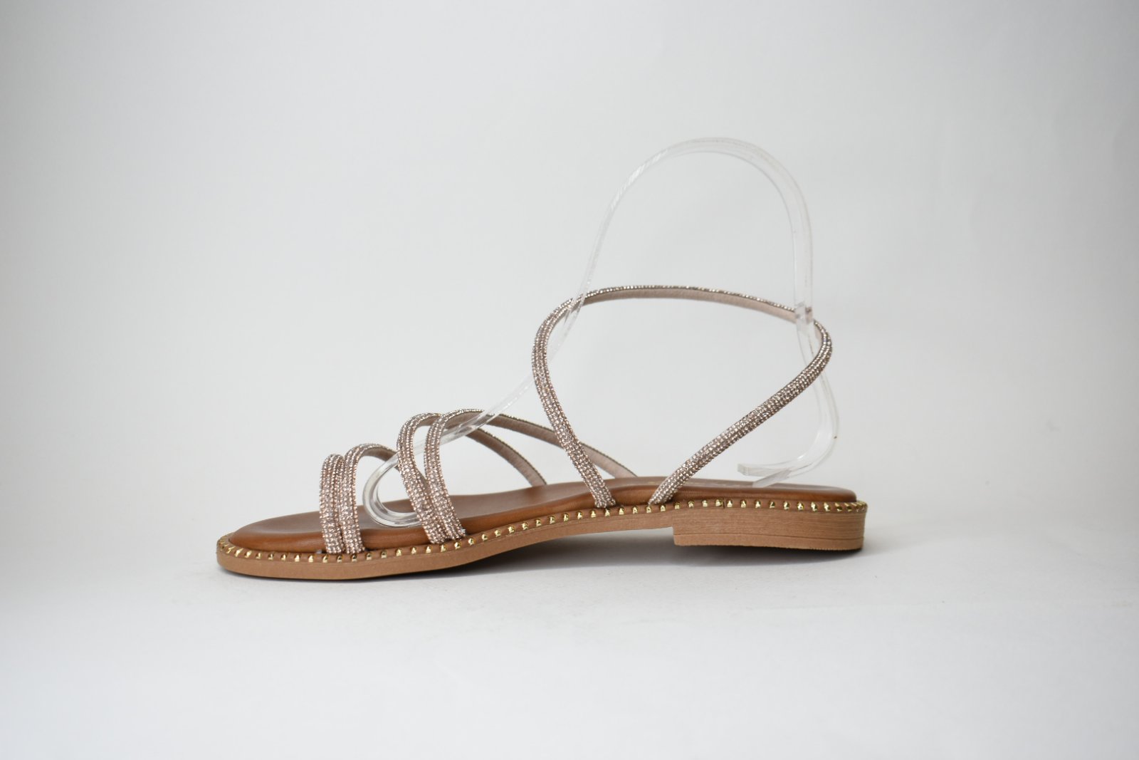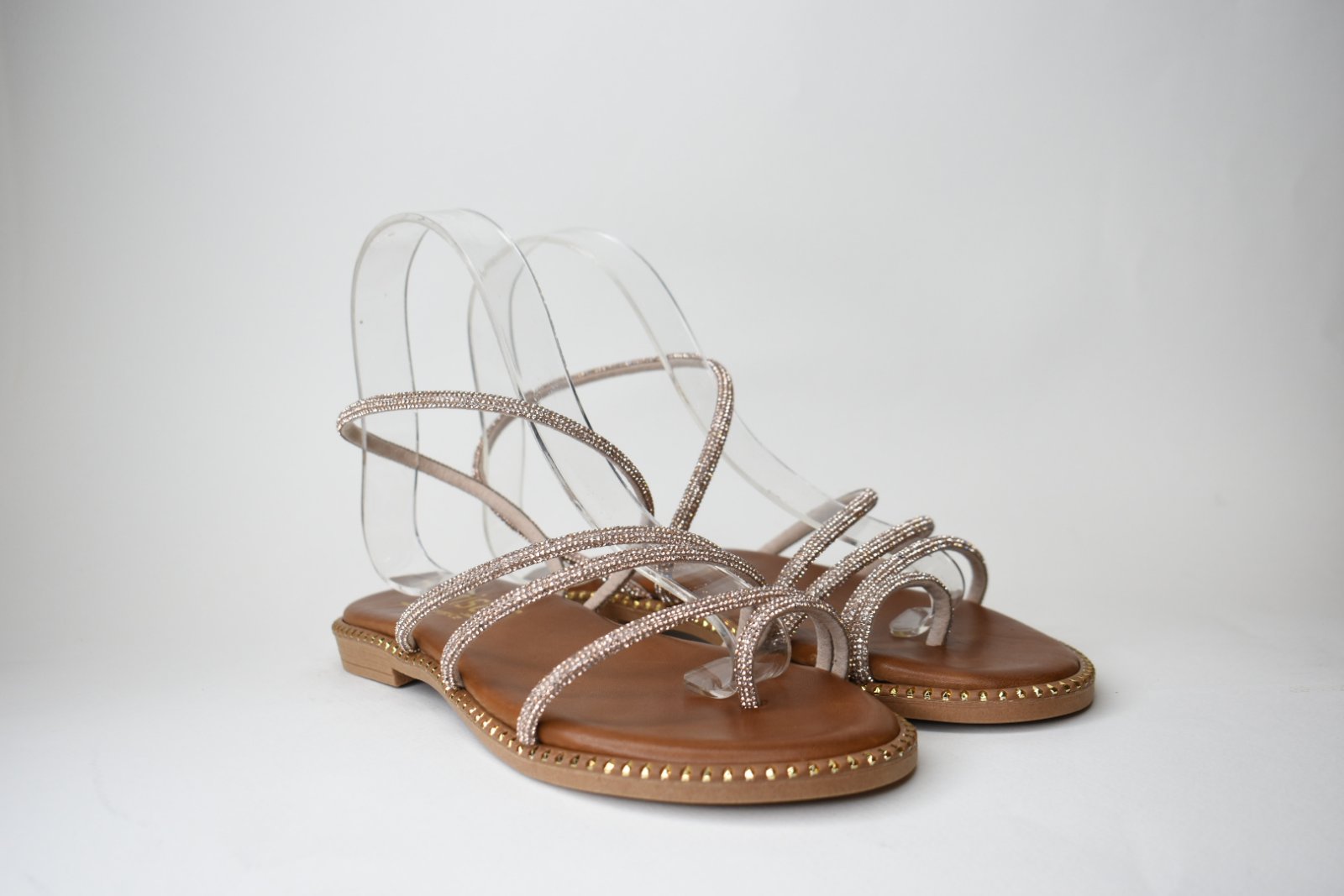 Χειροποιητα Δερματινα Πεδιλα με Ανατομικο Πελμα και Λουρακια me Strass στο Κουτεπιε Σχεδιο 08 Χαλκος/Rose Gold