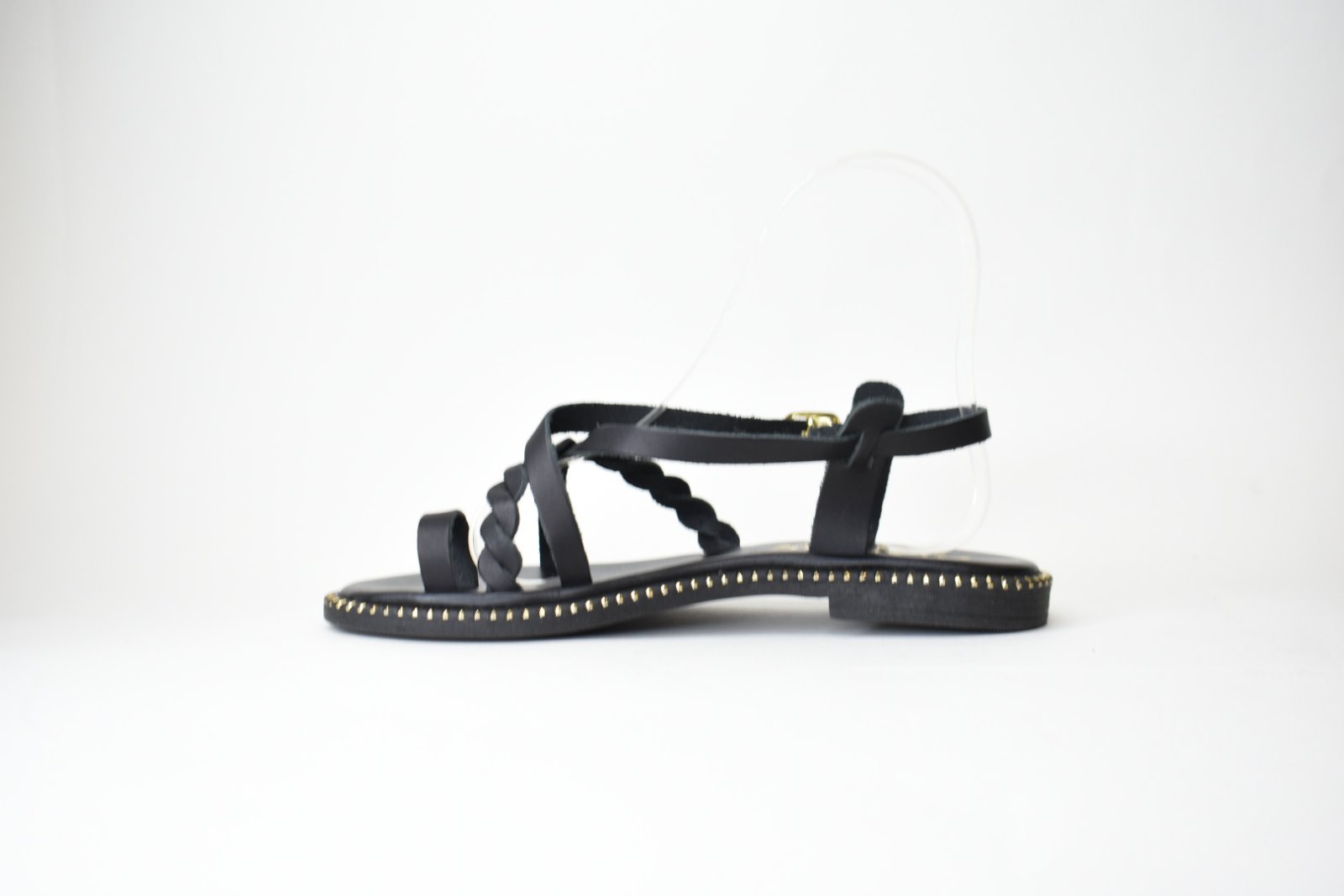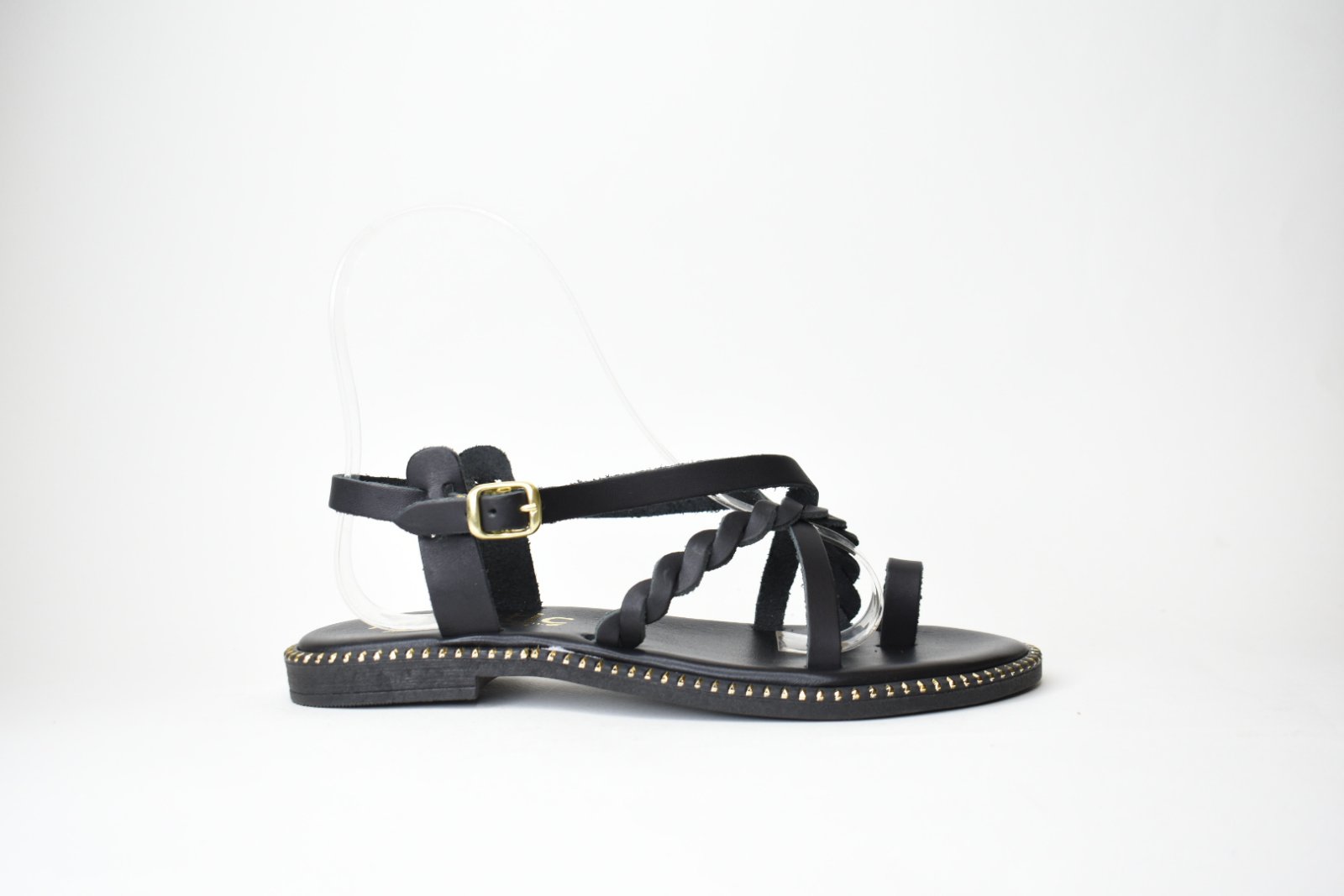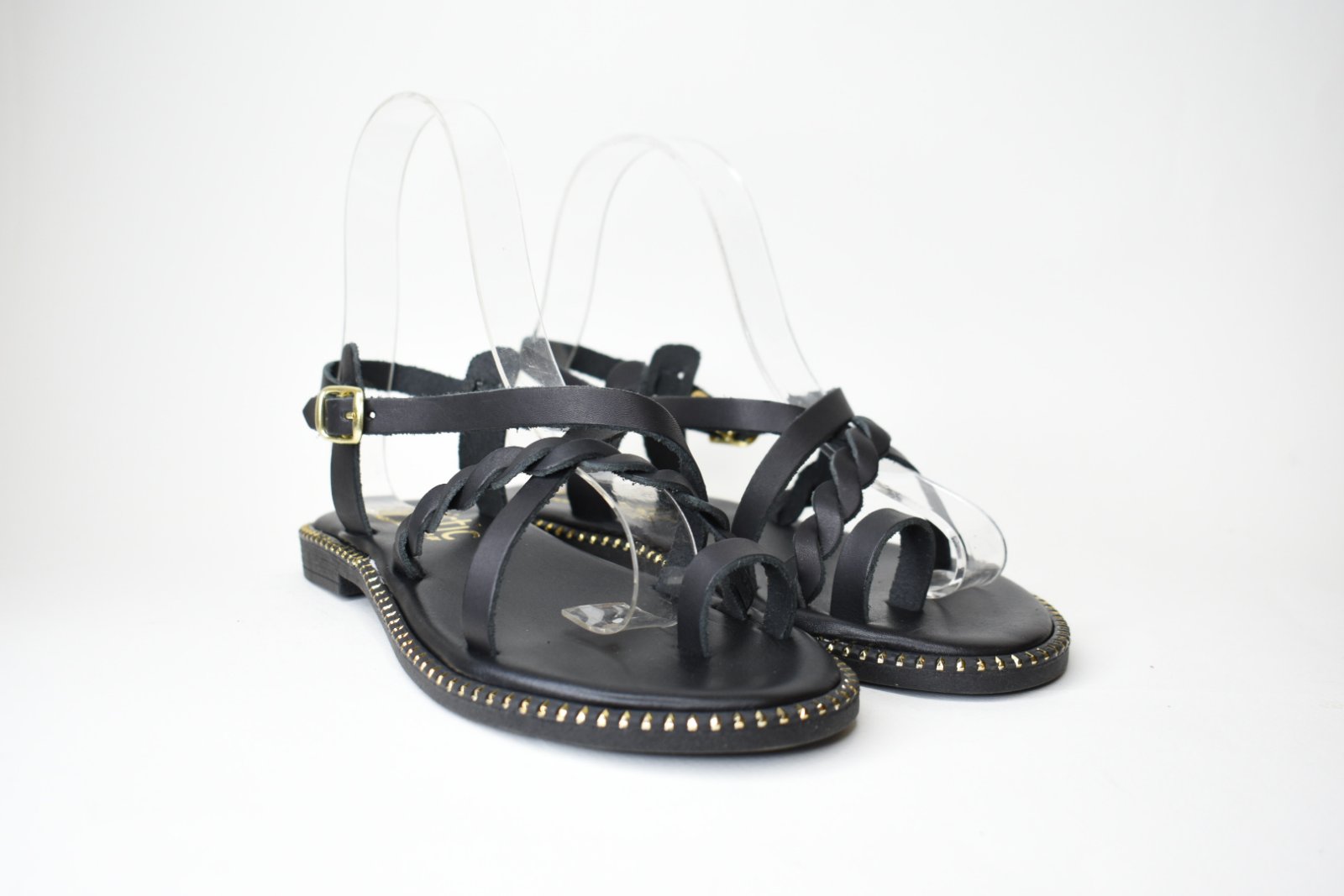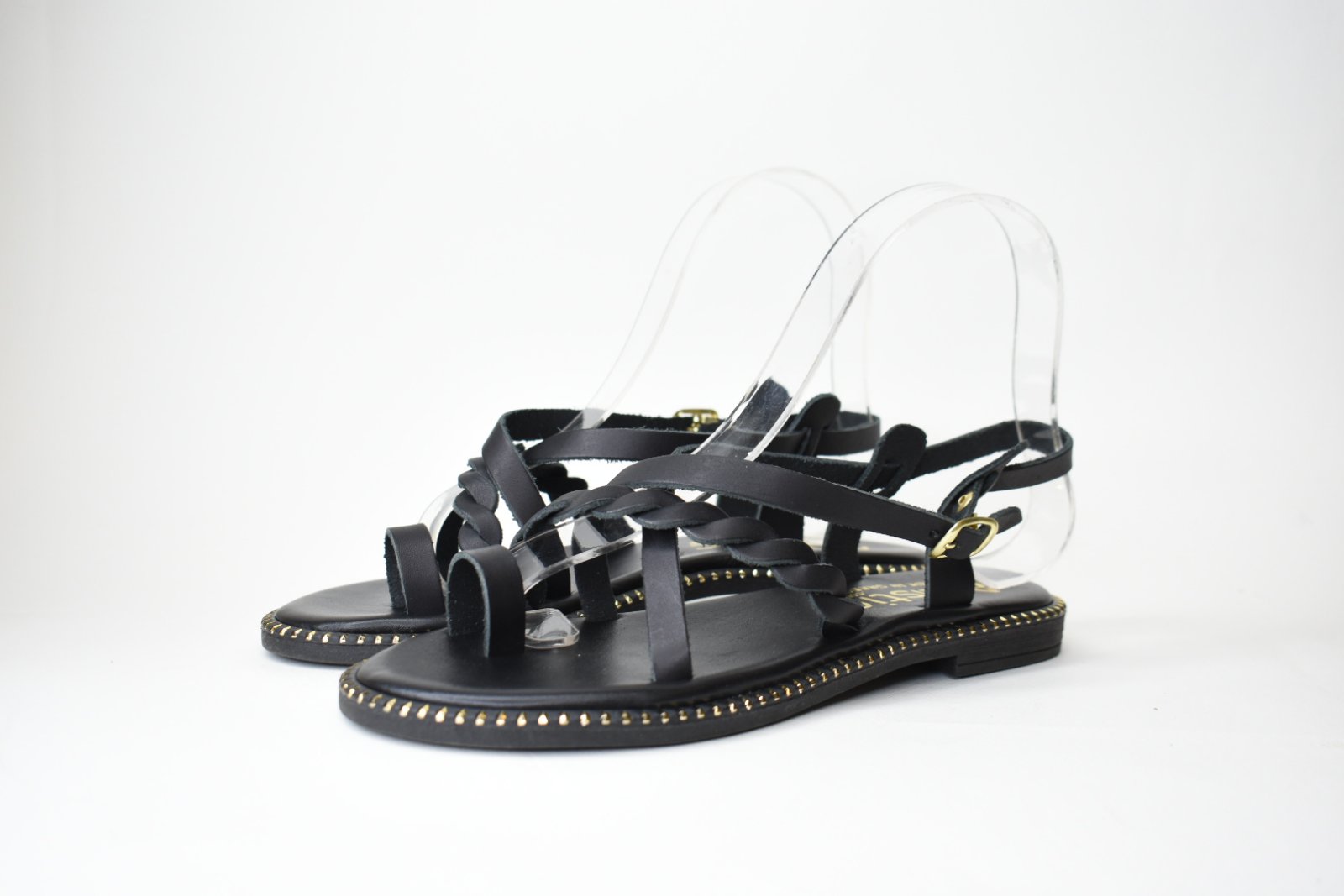 Χειροποιητα Δερματινα Πεδιλα με Ανατομικο Πελμα και Πλεξουδα στο Κουτεπιε Σχεδιο 04 Μαυρο/Black