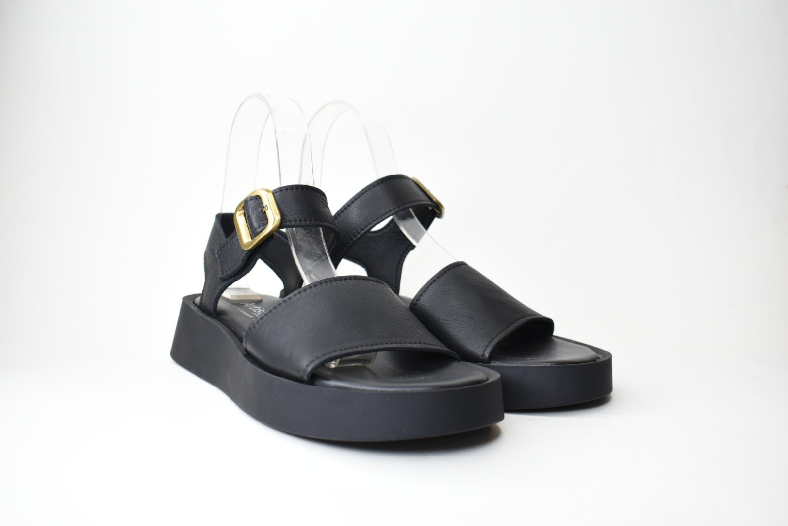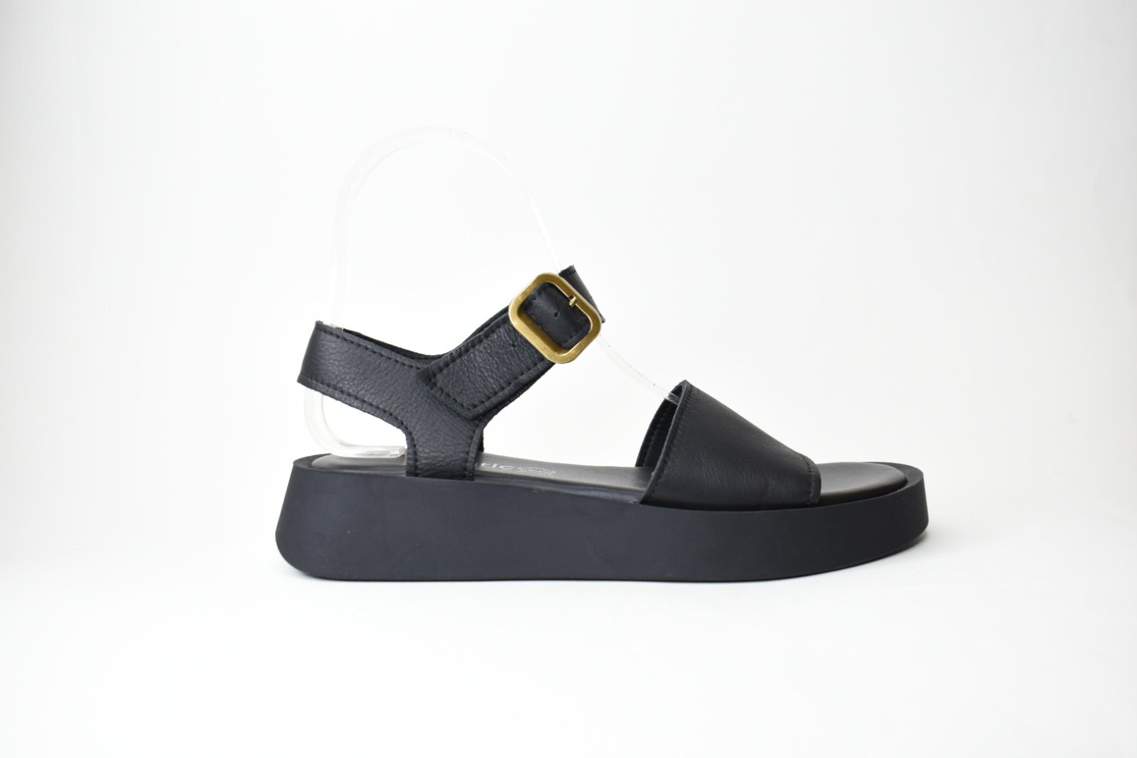 Χειροποιητα Δερματινα Πεδιλα με Μπαρετα Αστραγαλου και Χαλκινη Τοκα Σχεδιο 15 Μαυρο/Black