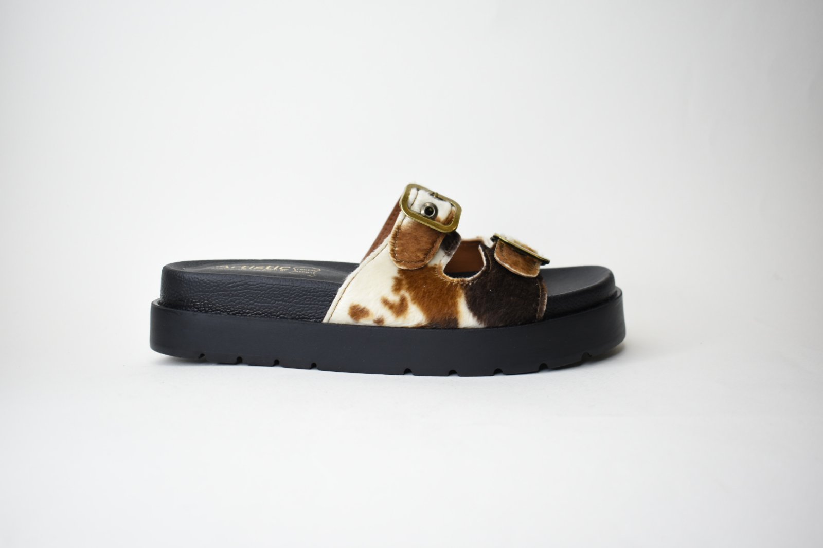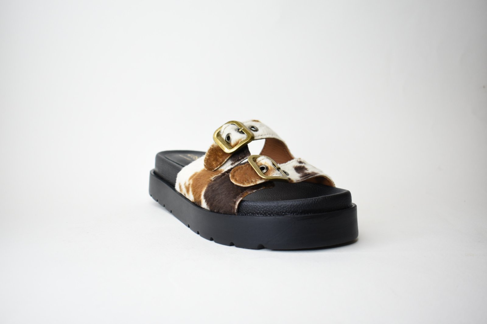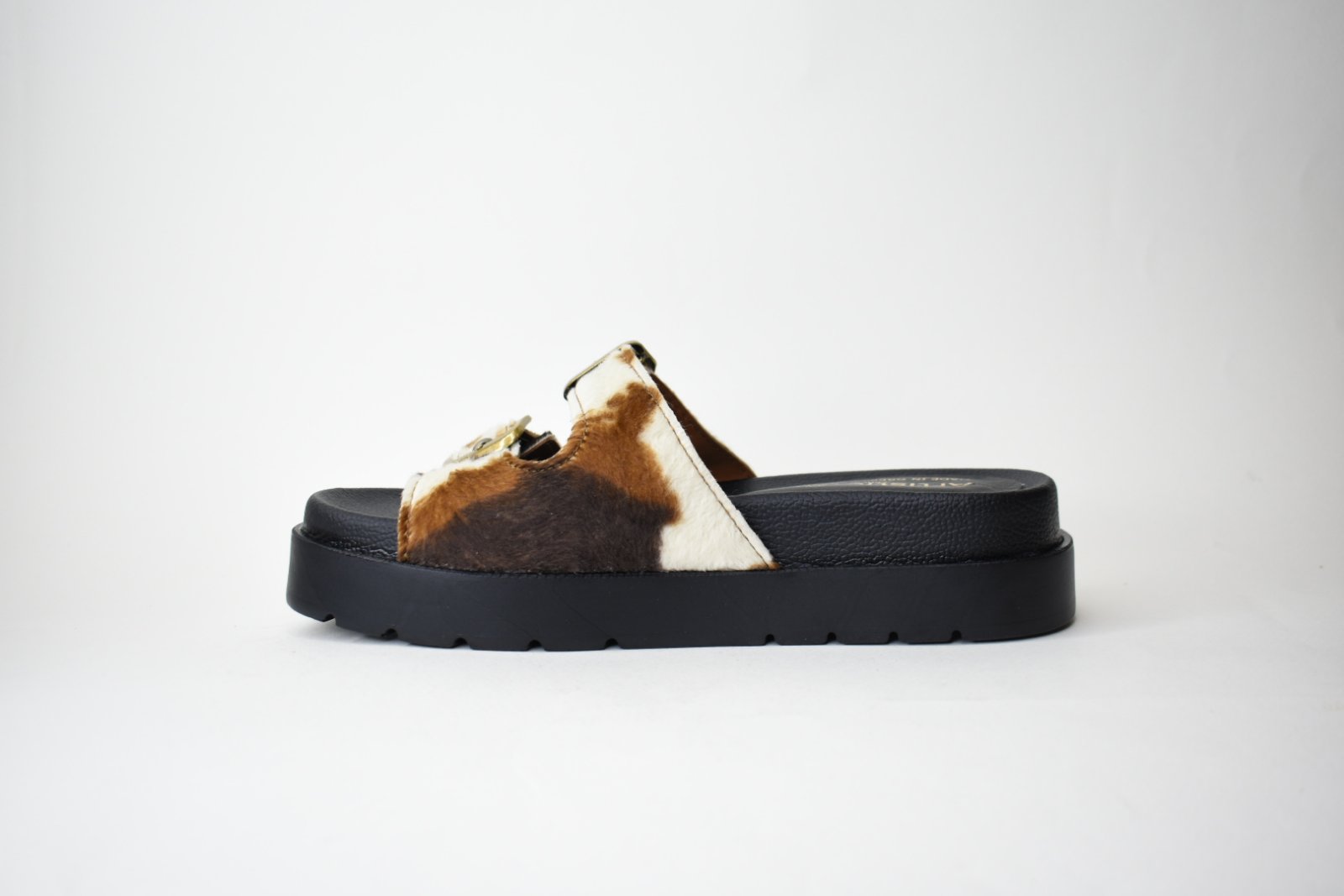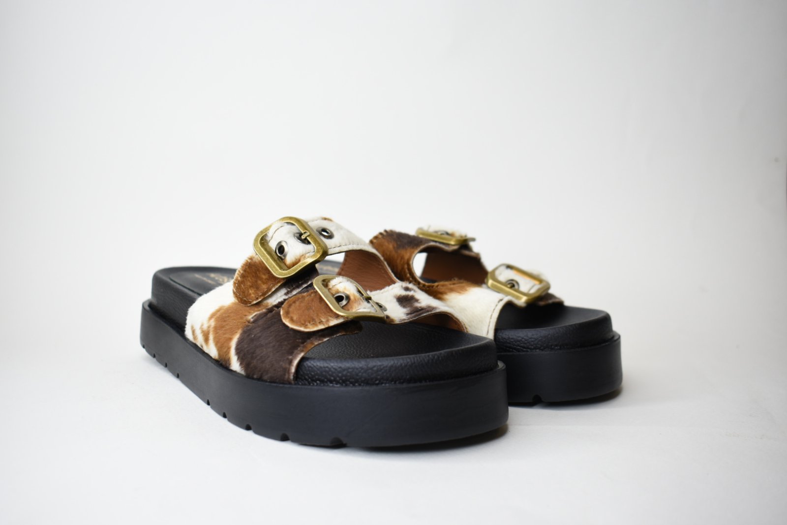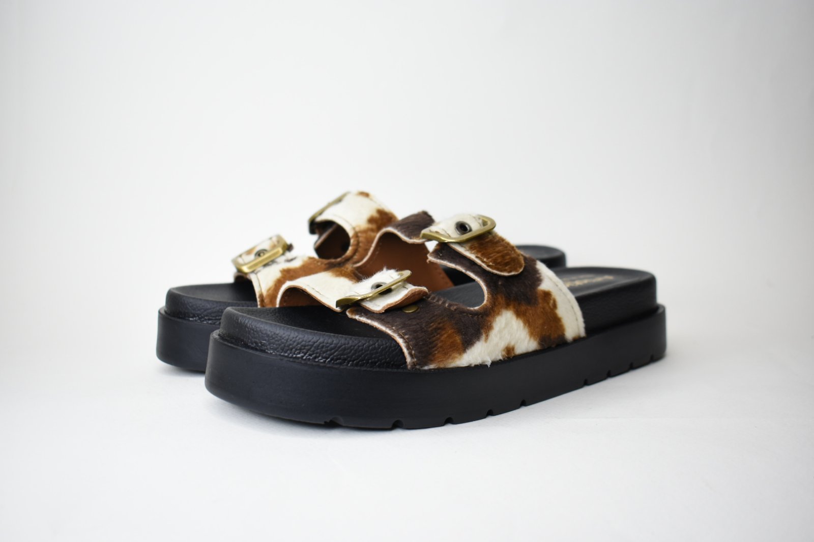 Χειροποιητες Δερματινες Flatform Παντοφλες 1110 Cow Print