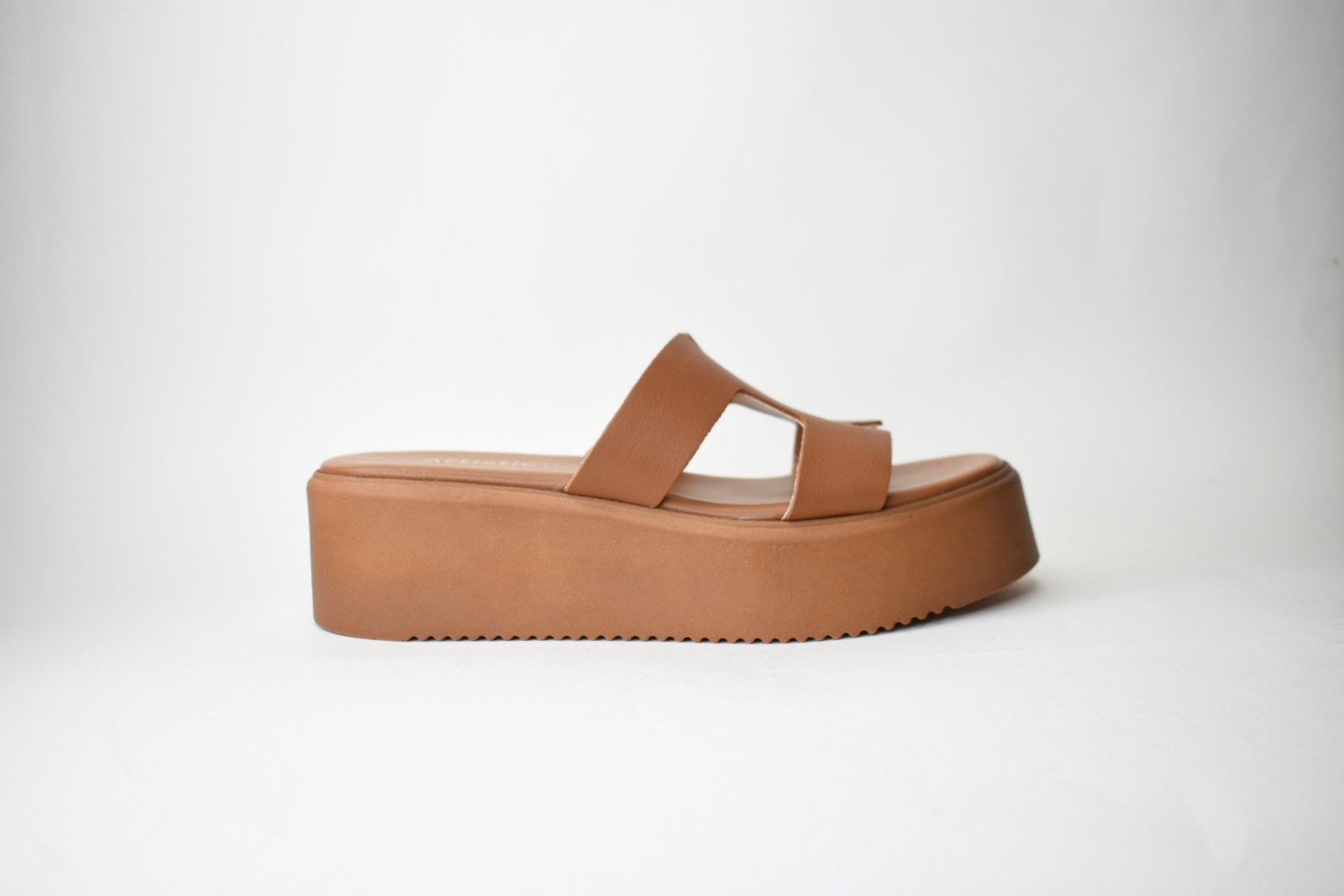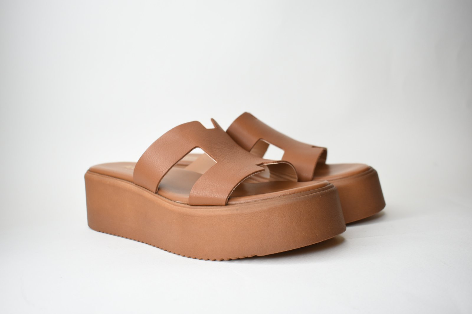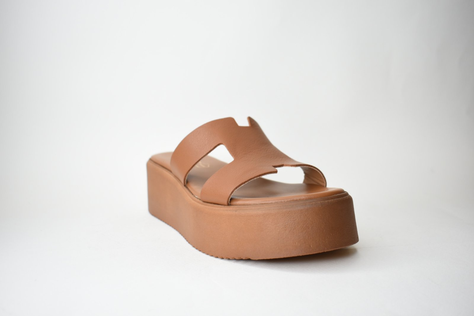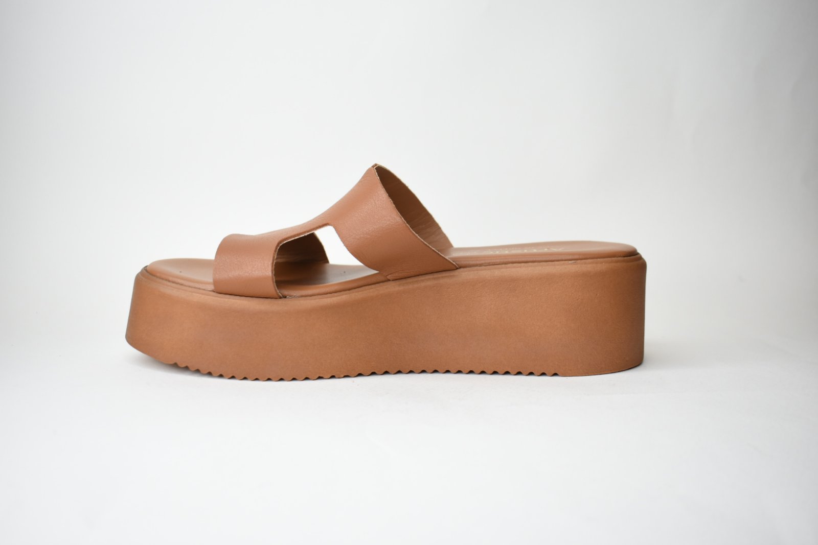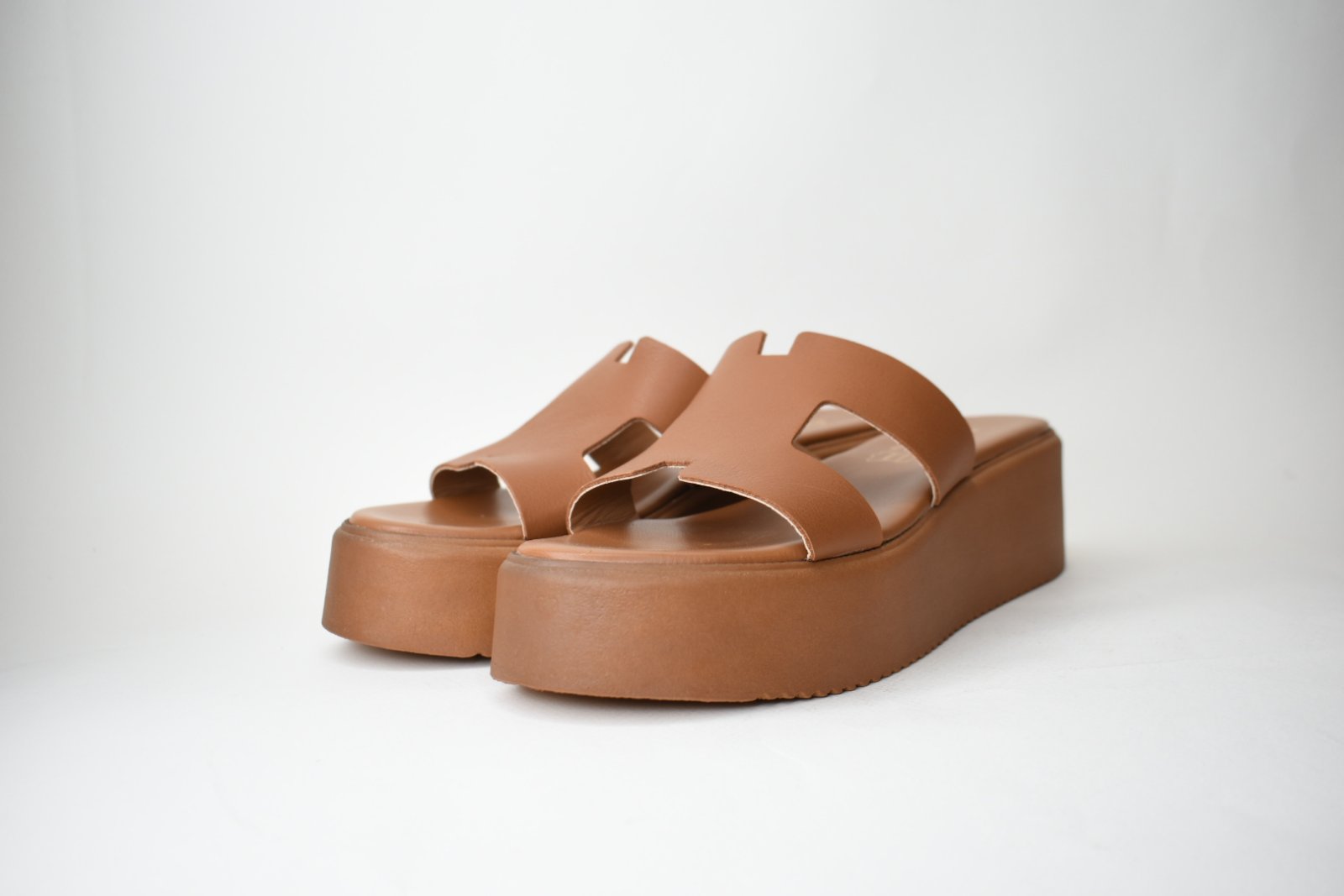 Χειροποιητες Δερματινες Flatform Παντοφλες Τυπου Hermes 14344 Ταμπα/Taba