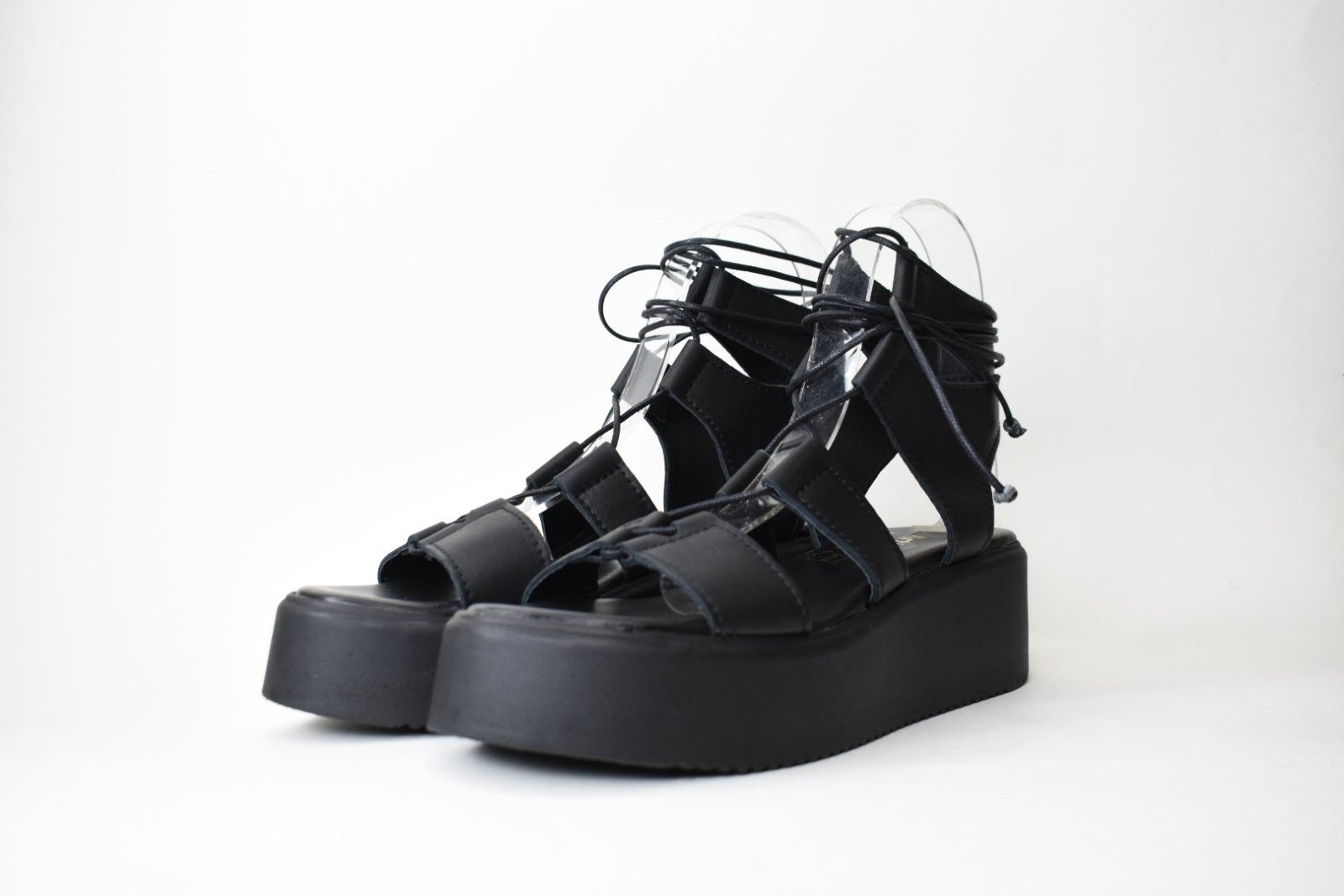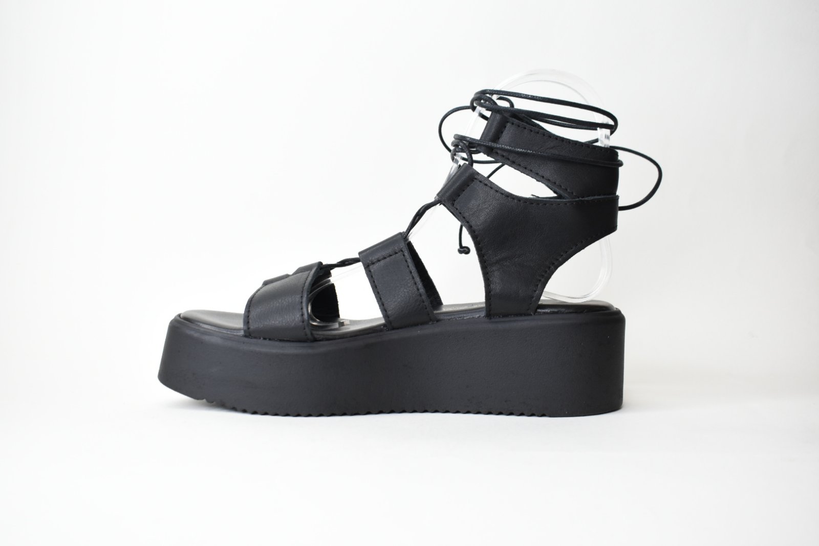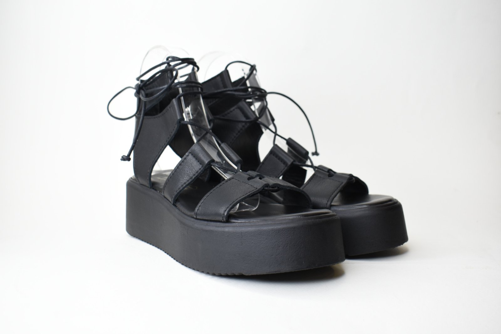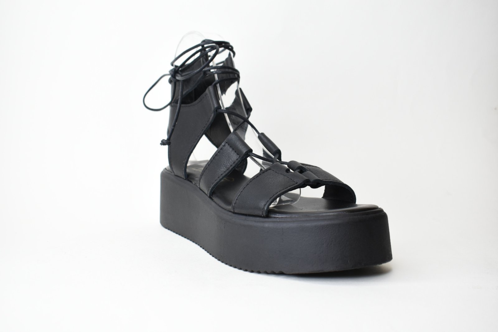 Χειροποιητες Δερματινες Πλατφορμες Τυπου Gladiator 1006 Mαυρο/Black