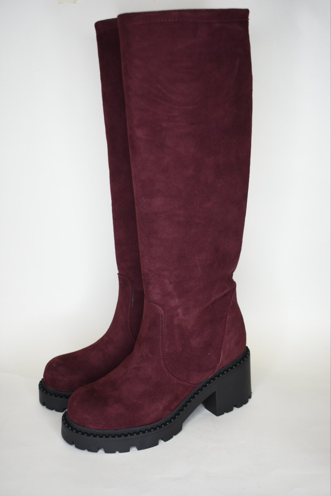Δερμάτινες Μπότες Castor με Χοντρό Τακούνι Ελληνικής Κατασκευής 003 Μπορντώ/Wine