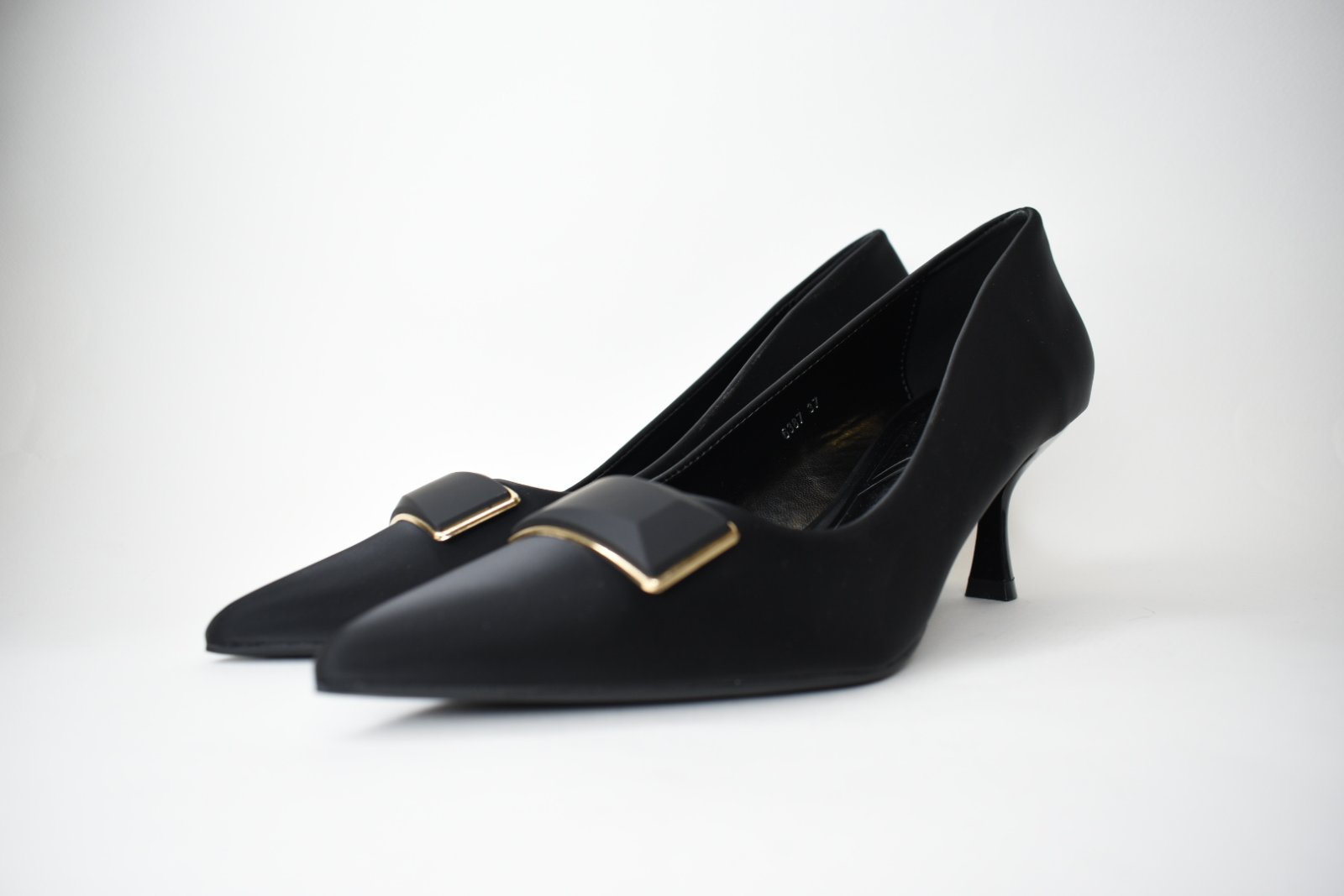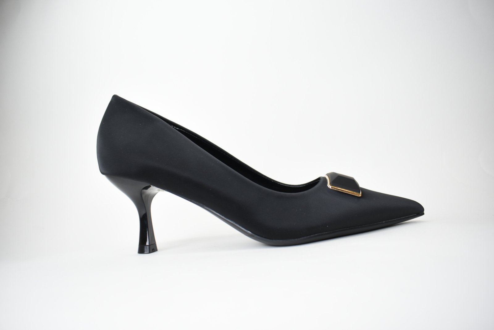 Γόβα με Λεπτό Τακούνι και Τόκα 6387 Black/Μαύρο