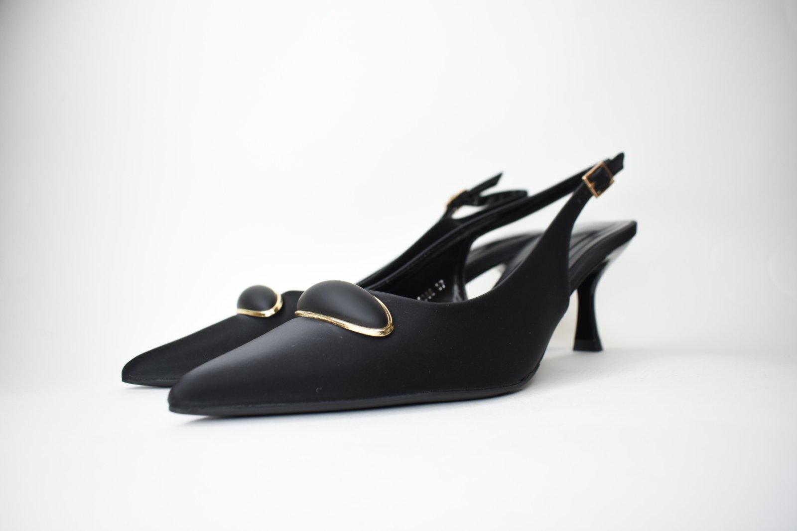 Γόβα/Πέδιλο με Λεπτό Τακούνι και Τόκα 6386 Black/Μαύρο