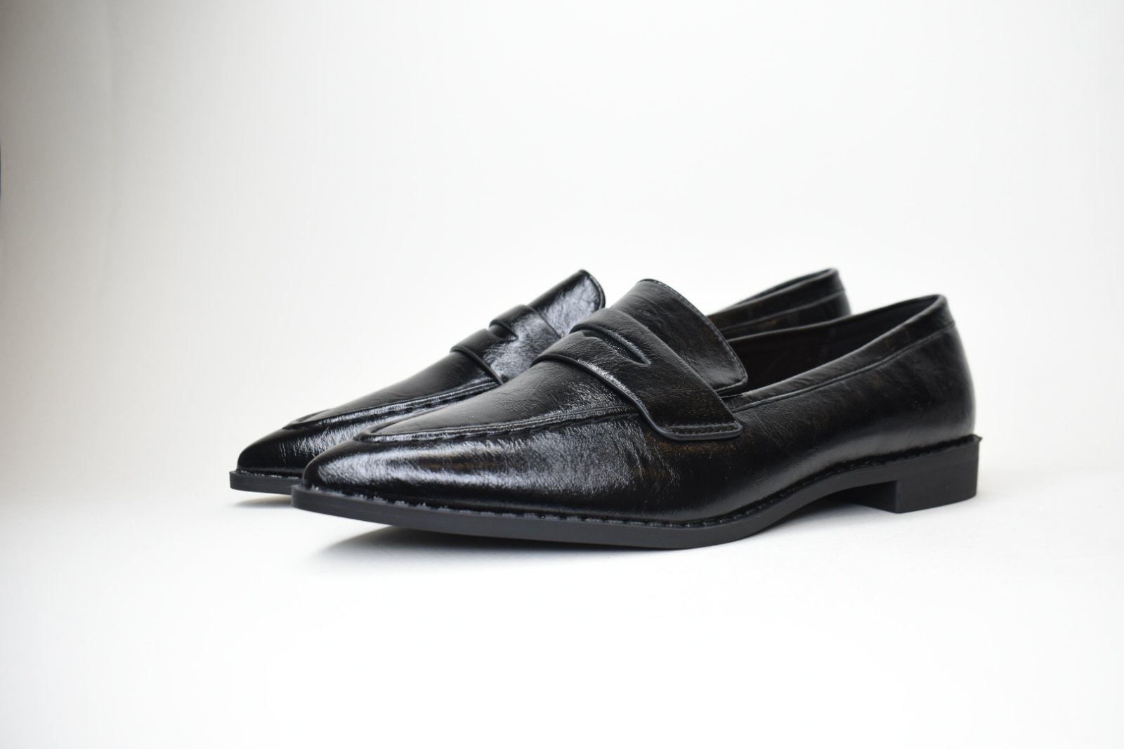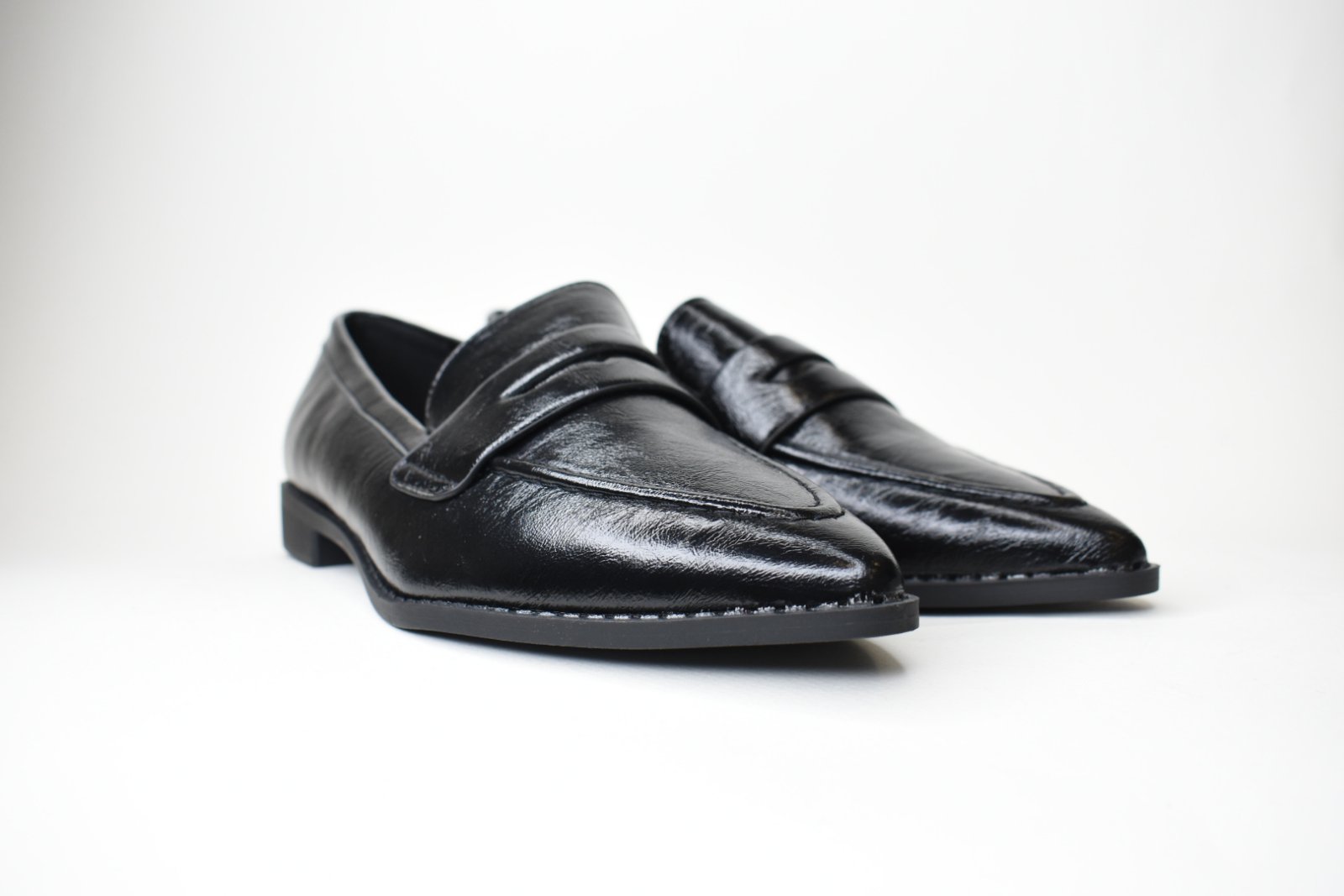 Μοκασίνι Δερματίνης Σπαστό Λουστρίν με Μύτη VB59203 Black/Μαύρο