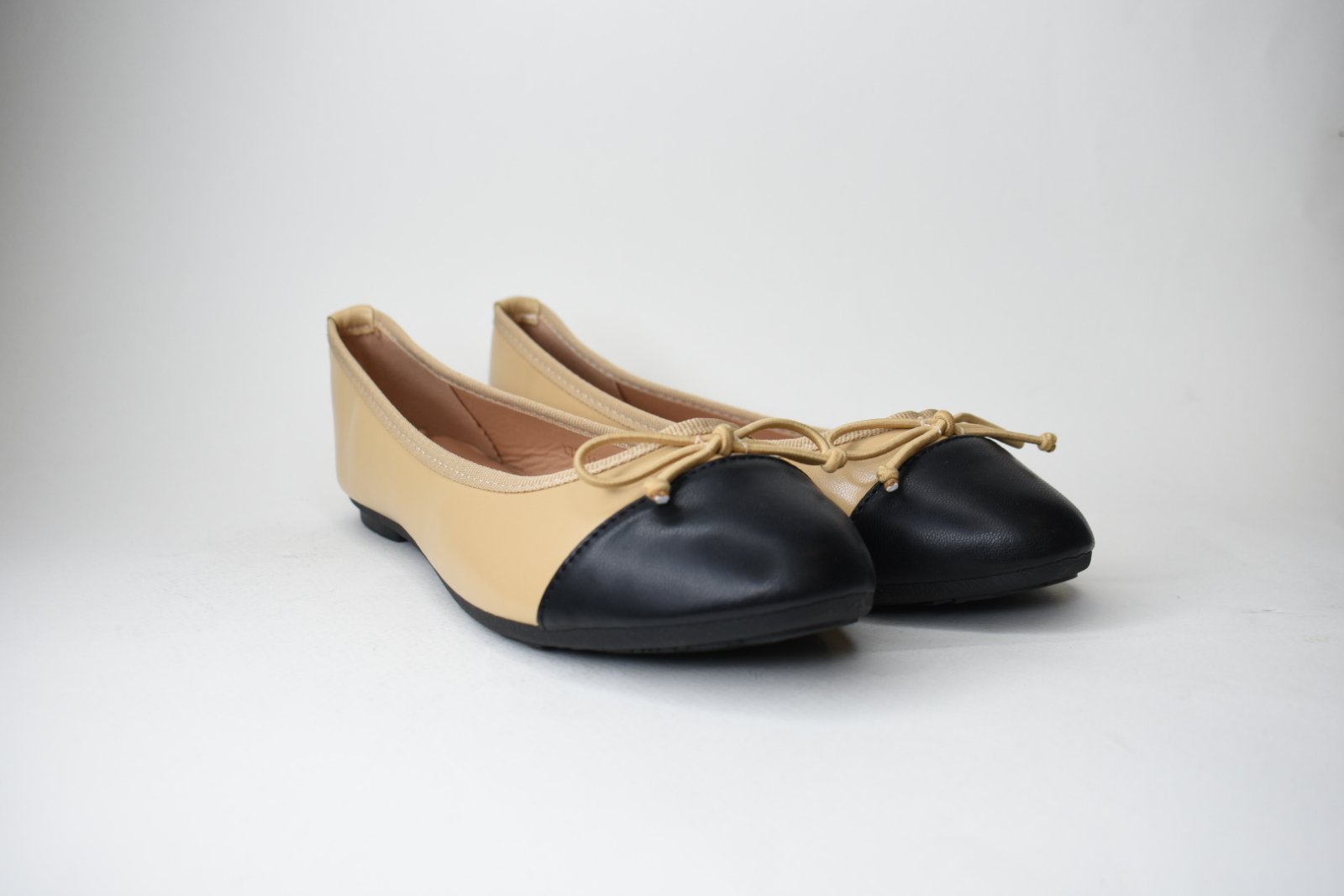 Μπαλαρίνα Δερματίνης Δίχρωμη με Φιόγκο LT2411 Beige/Μπεζ