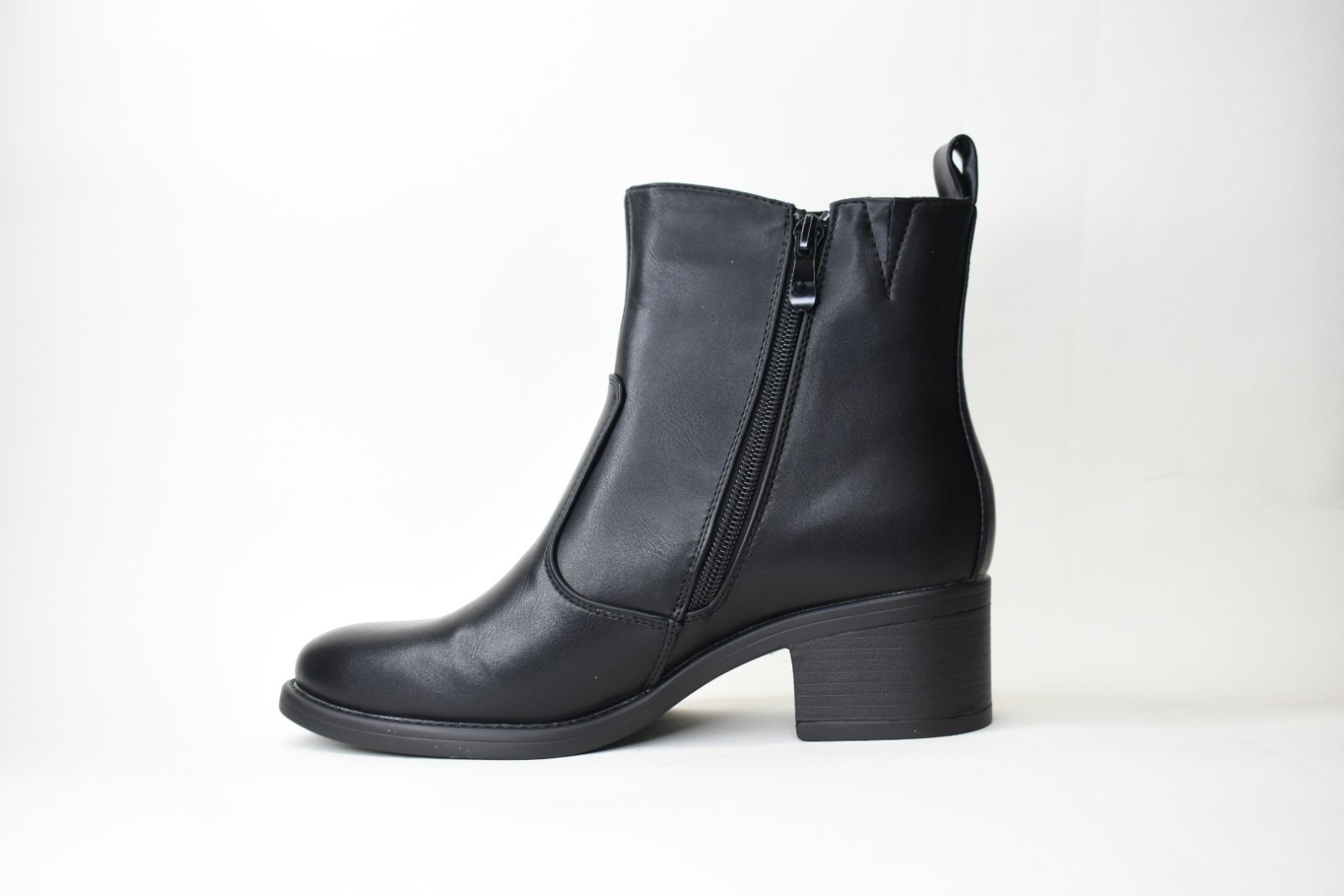 Μποτάκια Δερματίνης με Χαμηλό Τακούνι MP356 Black/Μαύρο