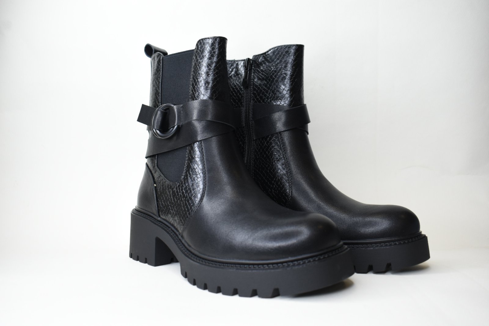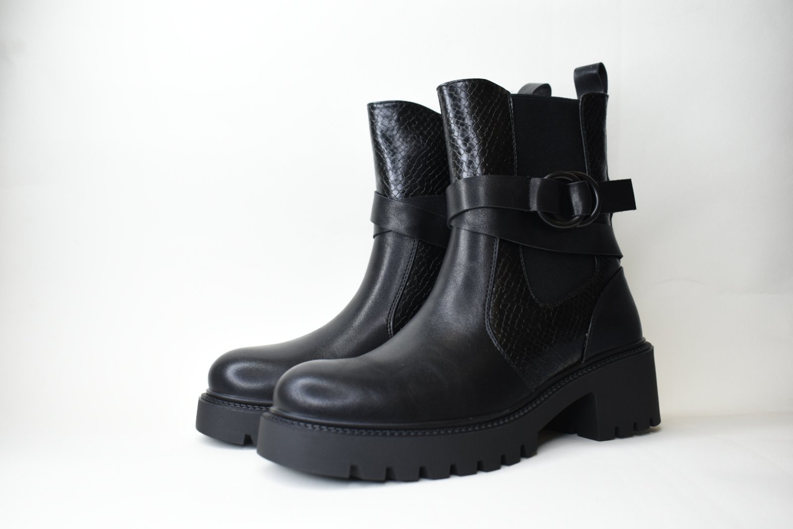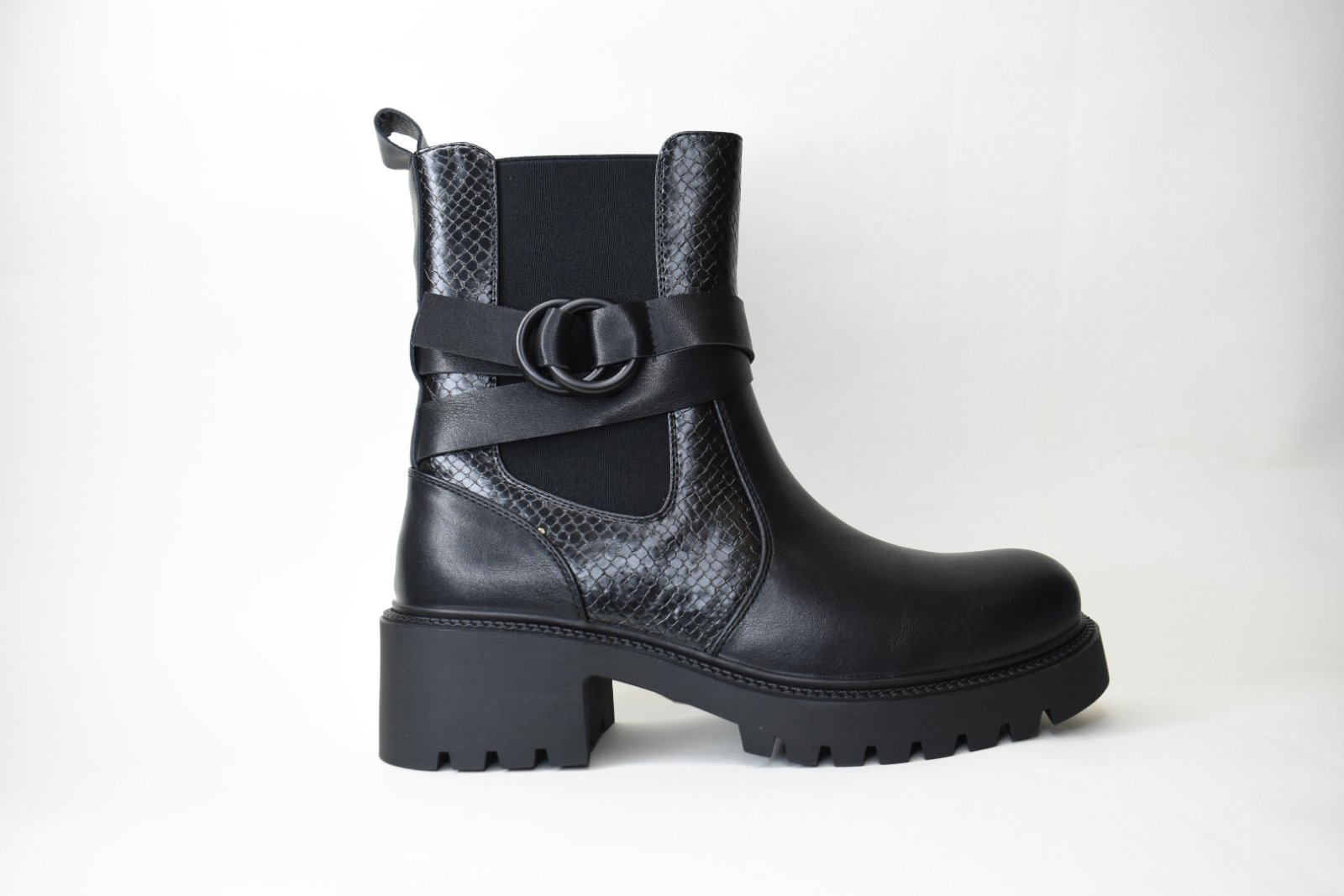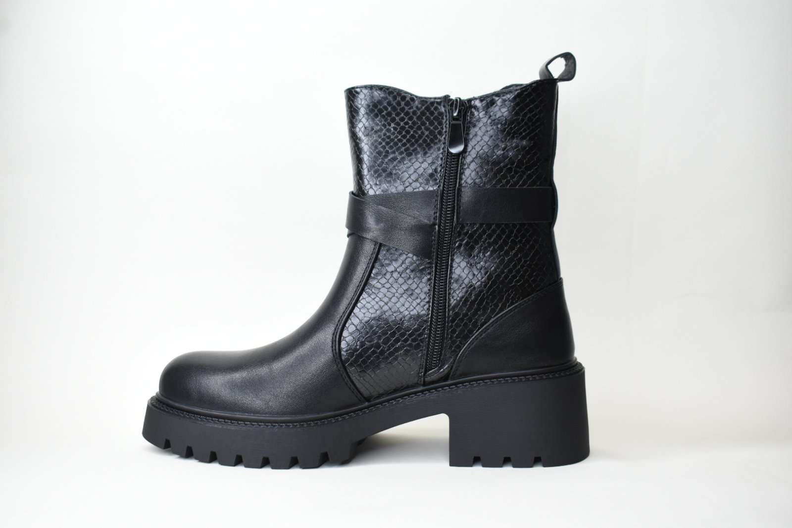 Μποτάκια Δερματίνης με Croco και Διακοσμητική Αγκράφα RQ547 Black/Μαύρο