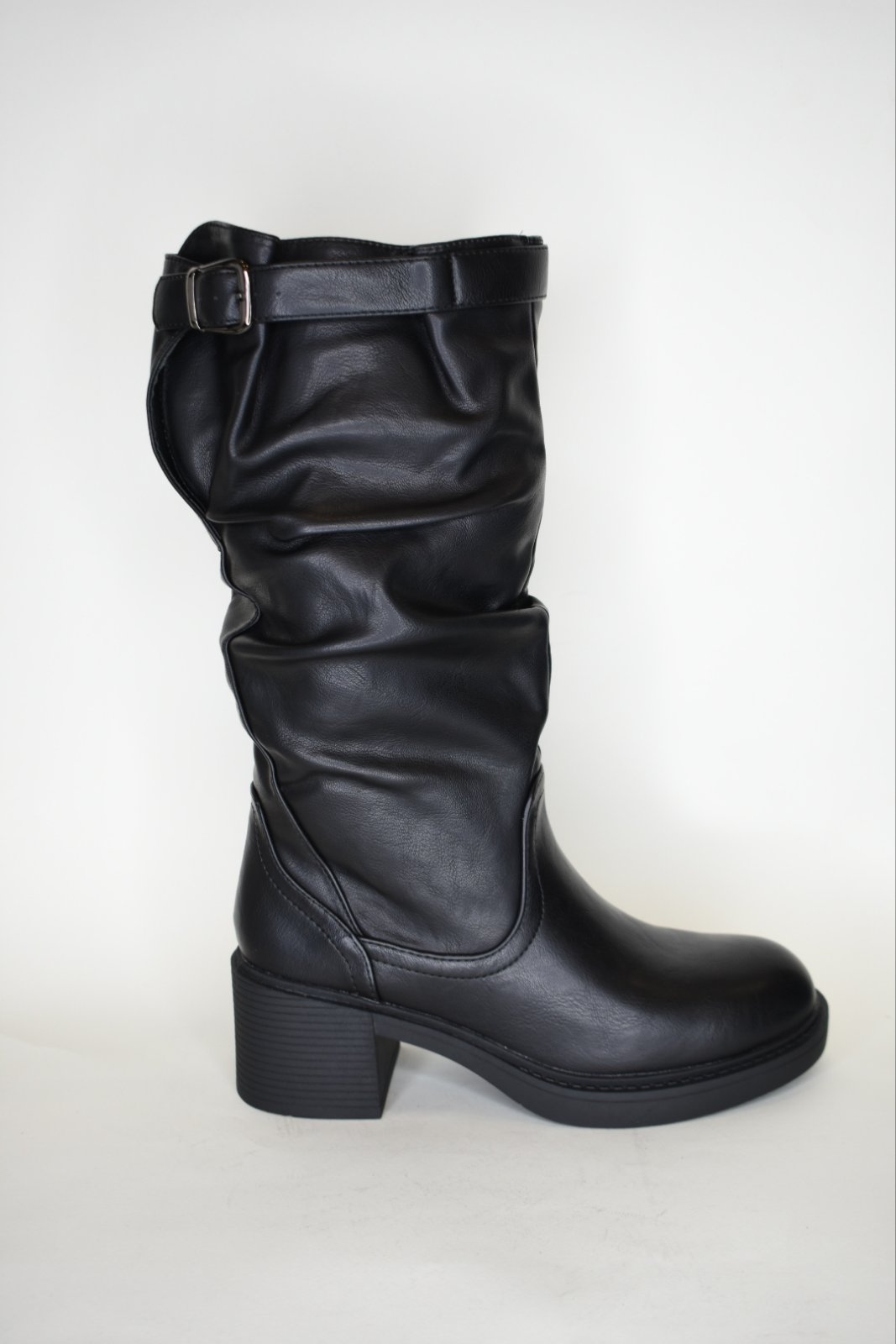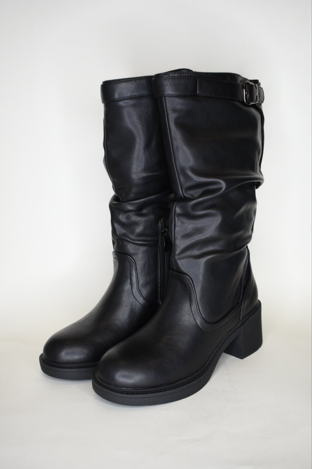 Μπότες με Χοντρό Τακούνι και Σούρες MP748 Black/Μαύρο