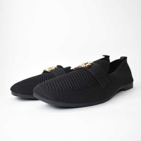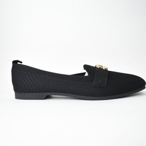 Μοκασίνια Διάτρητου Υφάσματος με Χρυσή Τόκα 77088 Black/Μαύρο